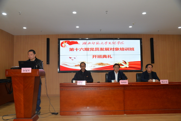本网讯(通讯员 余复军)11月14日晚,星空体育·(中国)官方网站XINGKONG SPORT在图书馆报告厅举办学校第16期党员发展对象培训班开班典礼。党委书记杨邓红、党委副书记杨之毛,学生工作部部长汪崇文,部分党支部书记以及第16期发展对象培训班全体学员等参加了开班典礼。