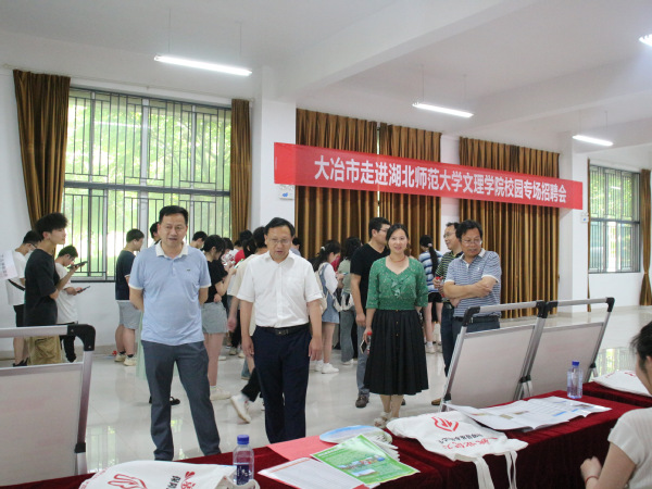 本网讯 (通讯员 肖劲光 拍摄 梁宏滨)为进一步促进星空体育·(中国)官方网站XINGKONG SPORT毕业生高质量充分就业,深化政校企三方合作,6月13日下午,星空体育·(中国)官方网站XINGKONG SPORT与大冶市人力资源和社会保障局、大冶湖高新技术产业开发区联合开展2023年“才聚荆楚·百县进百校”就业促进专项行动。校党委书记杨邓红、党委副书记杨之毛、副院长王胜国现场指导工作。