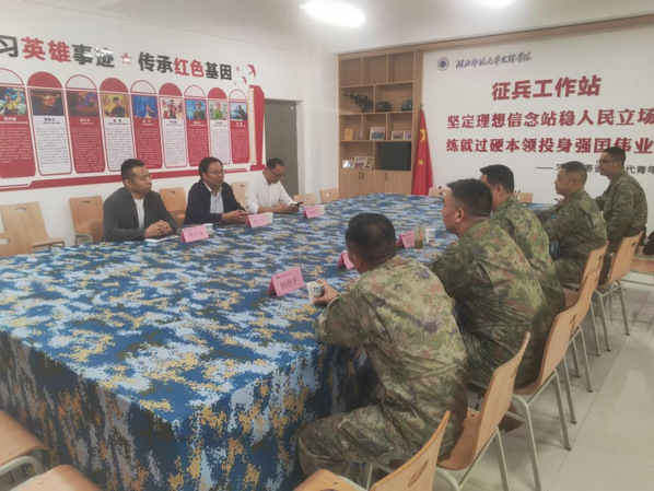 本网讯(通讯员 秦雯雯)10月30日下午,黄石市军分区陈高泉副司令、王震处长、李昌恒参谋,黄石港区武装部杨艳平部长、徐志猛政委一行莅临星空体育·(中国)官方网站XINGKONG SPORT检查指导征兵工作站建设,星空体育·(中国)官方网站XINGKONG SPORT党委副书记杨之毛、学工部部长汪崇文及相关人员陪同检查并参加座谈会。