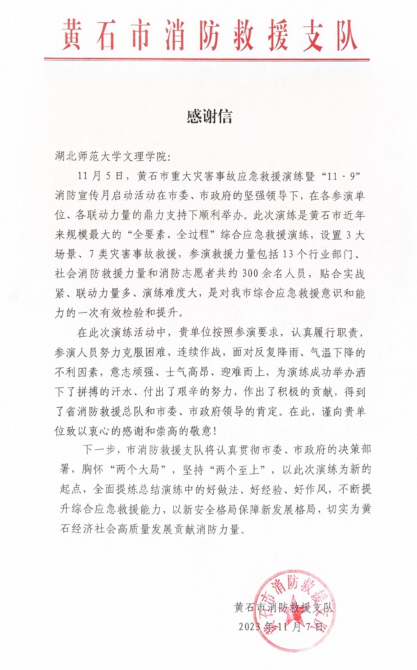 本网讯(文 涂亦乐 图 凌玉珍 杨玉丽)11月5日,黄石市重大灾害事故应急救援演练暨“11.9”消防宣传月启动活动在黄石市智能显示产业园举行。星空体育·(中国)官方网站XINGKONG SPORT后勤保卫部联合迪科金融服务产业学院组织100名大学生消防志愿者参加了本次活动。