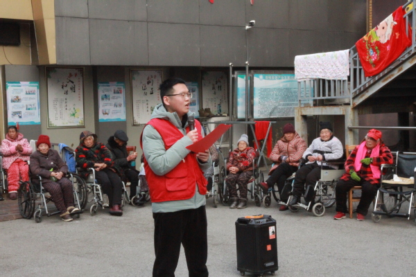 走进双缘养老院,志愿者通过小游戏的形式拉进与养老院老人的距离,围绕老人们常见的养老保健诈骗进行讲解,帮助老年人认清当前常见的养老诈骗骗局,同时为老人们送上鲜花,送去青年学子的关心与温暖。