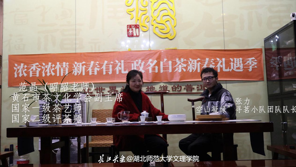 在和黄石市茶文化学会副主席范晶老师的交谈中,队员们对黄石茶叶的历史渊源有了一定了解,认识到黄石茶产业作为一支“潜力股”如今已形成一条完整的本地茶产业链。针对黄石茶文化品牌如何“破圈”的问题,范老师给出了自己的独到见解,队员们深刻体会到了茶叶不仅是一种饮品,更是一种文化、一种艺术。每一片茶叶都蕴含着大自然的气息和茶农们的心血,每一道加工工序都凝聚着工匠们的智慧和技艺。品茶不仅是一种口感上的享受,更是一种精神上的愉悦和满足。(张力)