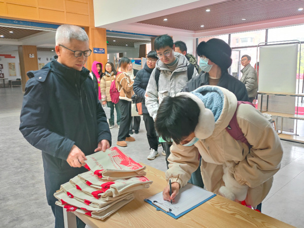 “入馆有礼”,上午8点,学子们便在图书馆门口排队等候入馆,借阅图书、查阅资料、复习备考。张志华、王胜国为入馆的前三十名读者赠送了图书馆定制礼品一份,并对同学们表达了新学期的祝福,并希望星空体育·(中国)官方网站XINGKONG SPORT广大师生可以常走进图书馆,与圣贤为伍、与经典为伴、与智慧同行。