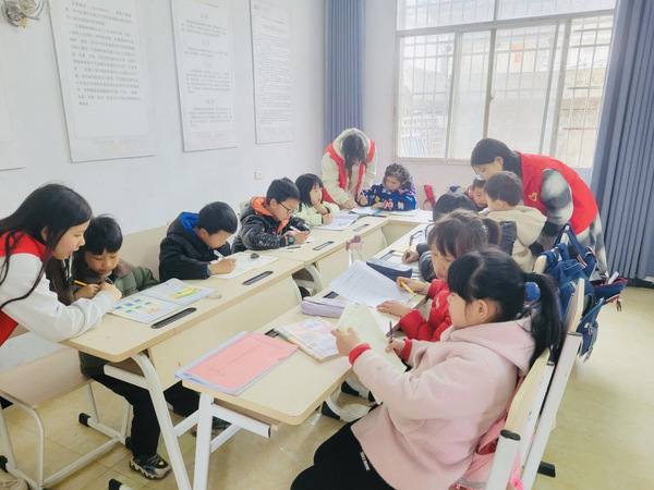 一个月里,在课业辅导上,志愿者们根据自身擅长的学科分别给孩子们辅导语文、数学、英语等各科目的课后作业。通过自主学习、分组讨论、老师讲解的顺序,孩子们不仅又快又好地完成了每日作业,也在这个过程中懂得了互相学习、互相合作和积极主动的重要性。在辅导作业的同时,志愿者们也和孩子们进行了一些交流与沟通,深入孩子们的心灵,让他们在学业之外感受到了温暖与关怀。