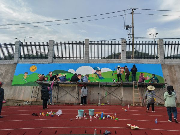 教育与艺术学部党总支充分发挥师生专业所长,服务社会,以墙体彩绘为载体,为城乡文明添彩,先后组织师生300余人次,分别前往黄石市汪仁镇汪仁社区章畈村、黄金山第四小学、花湖社区,共绘制了面积多达720平方米的主题墙绘。和美的乡村、美丽的校园、春耕夏种秋收冬藏的农耕文化,一幅幅画面呼之欲出。随着“网红墙”惊艳的亮相,“美好环境与幸福生活共同缔造”活起来了,城乡文明亮起来了。市民们表示:“画了墙体画之后,感觉我们身边越来越漂亮了,也更有文化气息了!”
