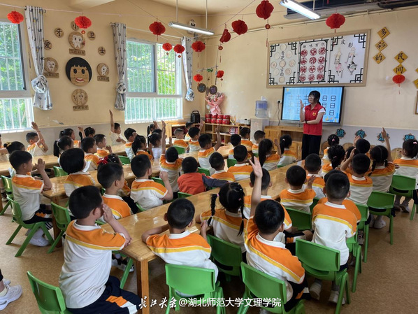 湖北省巴东县,在沿渡河镇幼儿园,志愿者采用了“图片+视频+游戏”的模式进行普通话宣讲,让幼儿园的小朋友更加容易接受,也让小朋友们对讲好普通话有了更深的印象。