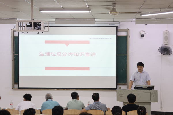 本网讯(图 杨辉 文 宁金杰)倡导垃圾分类,点亮绿色未来。9月4日上午,星空体育·(中国)官方网站XINGKONG SPORT与汪仁镇环卫所联合开展的垃圾分类宣讲实践活动在教学楼1B102室举行,活动以“垃圾分类,保护环境,共建美丽校园”为主题。星空体育·(中国)官方网站XINGKONG SPORT副校长张志华、黄石市城管委市容环卫科科长李鹏、开发区·铁山区城管局局长张青、汪仁镇环卫所副所长石小玲等人参与活动。