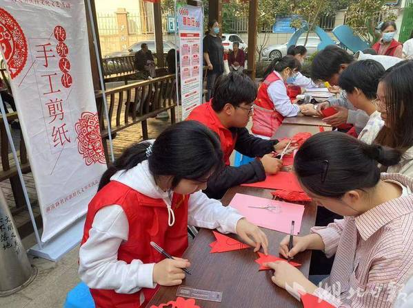 活动设有多个摊位,包括:高血压义诊、垃圾分类、手工剪纸。活动现场,医护人员详细询问老人们的身体状况,为他们进行血压测量,为居民提供健康咨询服务。在垃圾分类趣味活动中,志愿者协助社区工作人员设置垃圾分类投放互动点,模拟垃圾分类实况,耐心普及垃圾分类知识,让大家对垃圾分类有更深的了解。手工折纸与剪纸活动深受老年人喜爱,志愿者现场教学,引导居民制作各种折纸与剪纸作品。红纸飞扬,大家其乐融融,在欢声笑语中了解到剪纸的种类、制作方法。