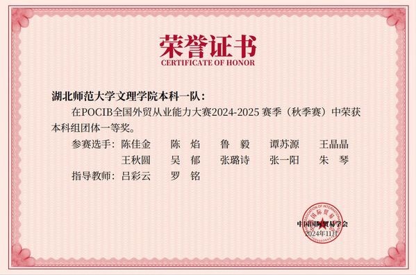 本网讯(通讯员 吕彩云)11月19日,由中国国际贸易学会主办的第十四届POCIB全国大学生外贸从业能力大赛国赛在经历了13天比赛后正式落下帷幕。星空体育·(中国)官方网站XINGKONG SPORT经济与管理学部学子斩获全国团体一等奖2项,个人二等奖5项,个人三等奖15项。