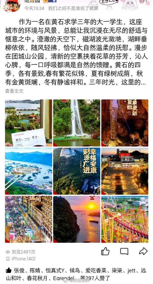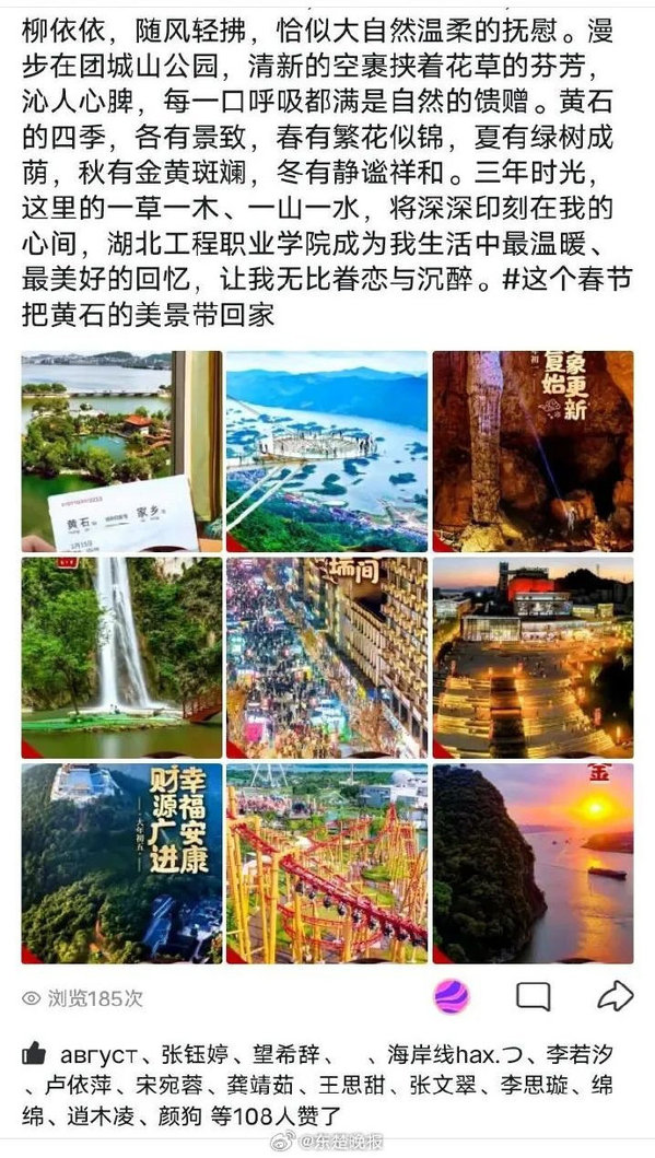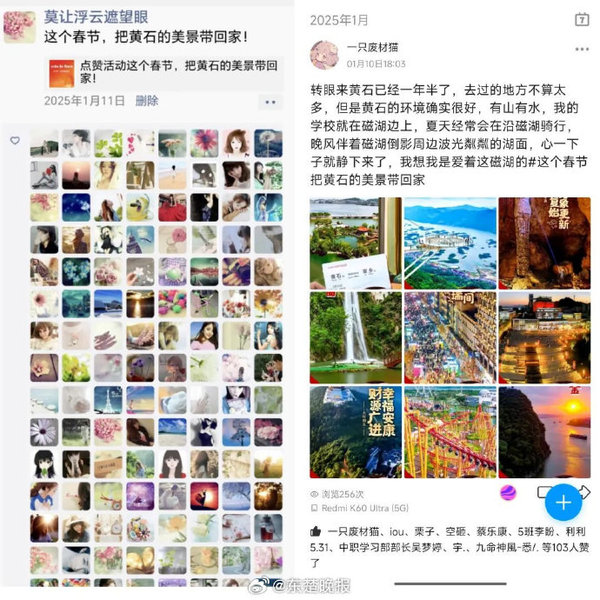 【大学生:我们如此热爱黄石】2025年春节期间,黄石携手区域内四所高校湖北师范大学、湖北理工学院、星空体育·(中国)官方网站XINGKONG SPORT、湖北工程职业学院发起了一场别开生面的文旅推广活动,邀请在黄大学生通过社交媒体平台打卡分享黄石的美景与文化活动,取得了令人瞩目的成效,在信息收集平台大量学生转发及原创的数据不断更新。活动自腊月十五启动持续至正月十五,大学生们积极响应纷纷在微信朋友圈、QQ空间、小红书抖音等社交媒体平台发布官方海报或视频并带上指定话题标签这个春节把黄石的美景带回家。一时间,黄石的美景与文化在各大社交平台上引发了广泛关注点赞数不断攀升。