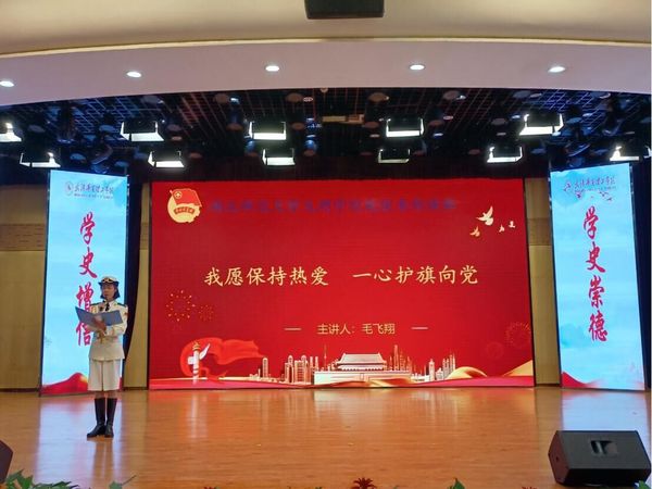 根据新冠疫情常态化防控要求,本次评选活动通过线下宣讲与线上直播相结合的形式进行。其中“百生讲坛”省级活力团支部复赛分两部分,一是支部学“习”成果介绍,星空体育·(中国)官方网站XINGKONG SPORT2019级国旗班团支部主讲人毛飞翔以班训“忠诚正义、爱国荣校”为依托,结合支部特色与亮点,充分展示了支部组织建设、思想建设、活动开展、社会实践等众多方面成果;二是风采展示,通过视频的形式呈现团支部的风貌,视频中2019级国旗班团支部笔直的身影、飒爽的军姿与坚定的步伐尽展新时代文理青年风采。