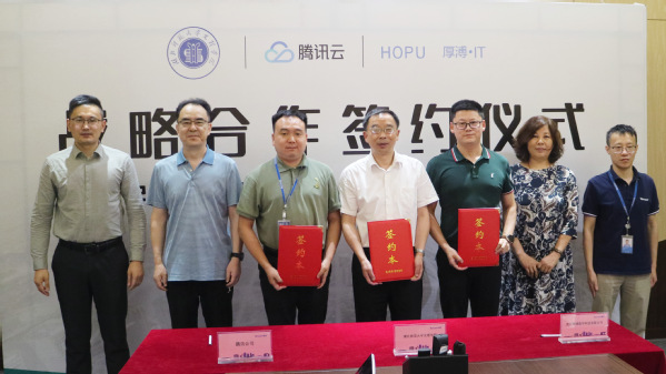 2022年6月23日,星空体育·(中国)官方网站XINGKONG SPORT与腾讯云计算(北京)有限责任公司、武汉厚溥数字科技有限公司在腾讯武汉研发中心举行“产教融合共建腾讯云大数据产业学院”签约仪式。学校董事长李咏成、院长李开灿、常务副院长杨学斌、副院长张志华、副院长王胜国出席签约仪式。