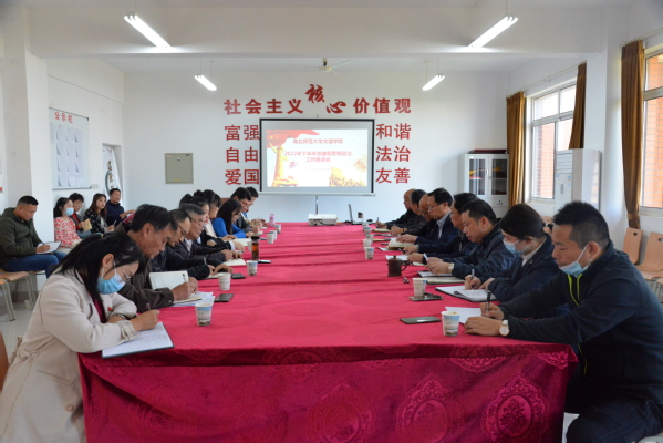 党委书记杨邓红从领导班子与基层党组织建设、党风廉政建设与反腐败工作、统一战线和群团工作、下沉社区及乡村振兴工作等方面,就今年以来的工作进行了简要回顾,并就做好下一阶段的党建思政工作进行了强调:一是做好二十大精神学习宣传贯彻工作。二是继续做好《习近平谈治国理政》第四卷学习宣讲工作;持续推进湖北省党员干部下基层察民情解民忧暖民心实践活动。三是开展好支部主题党日活动,抓好支部和党员档案建设。四是举办入党积极分子、发展对象、预备党员等培训班,做好党员发展、转正等工作。五是开展新生访谈。六是持续推进清廉学校建设,开展三级廉政谈话。七是做好民族宗教工作。八是做好工会群团、下沉社区、乡村振兴等工作。