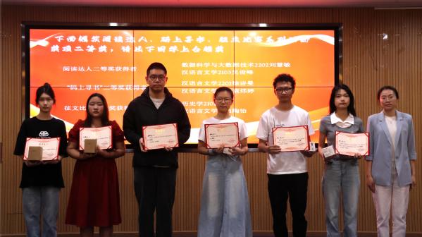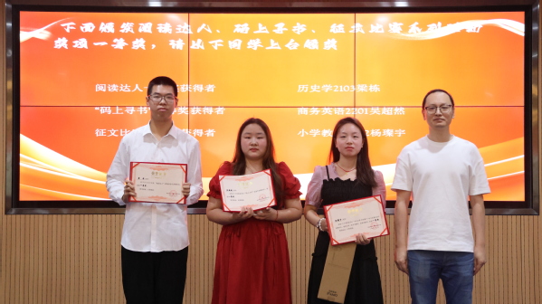 杨学斌宣读了此次“读书月”系列活动获奖名单。现场对获得阅读达人、“码上寻书”比赛、主题征文比赛、《钢的城》讲书人大赛获奖的个人,获得书香班级和书香学部的集体进行了颁奖。