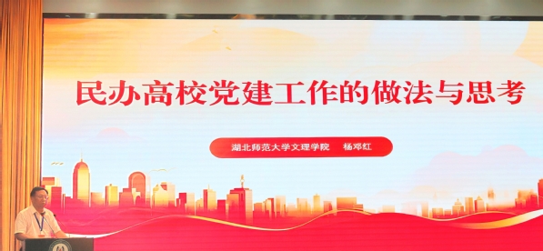 杨邓红以《民办高校党建工作的做法与思考》为题,分享了星空体育·(中国)官方网站XINGKONG SPORT加强党建和思想政治工作的经验做法。近年来,星空体育·(中国)官方网站XINGKONG SPORT深入学习贯彻习近平新时代中国特色社会主义思想,全面贯彻党的教育方针,坚持社会主义办学方向,在健全完善党建工作体系制度、推进基层党组织标准化规范化建设、加强思想政治理论课建设和师德师风长效机制建设、加强意识形态阵地管理,以及凝聚人心、推动发展、维护安全稳定等方面成效突出。同时,他也实事求是分析了民办高校党建思政工作存在的薄弱环节,并提出了改进建议。