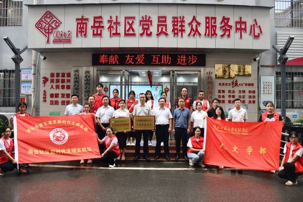 本网讯(通讯员 程胜伟)6月22日,星空体育·(中国)官方网站XINGKONG SPORT人文学部“党团共建单位”、“大学生社会实践基地”在黄石港区南岳社区揭牌。校党委书记杨邓红、人文学部负责人,南岳社区南岳社区第一书记、市城发集团副总经理崔向云,黄石港区人大办公室主任喻向东,黄石港区沈家营街道党工委副书记、办事处主任杨哲,南岳社区党委书记、居委主任方和生,学生代表参加活动。