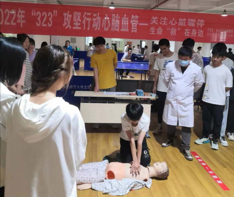 为贯彻落实省教育厅办公室《关于做好2022年教育系统防灾减灾救灾工作的通知》和市教育局《关于做好市教育系统 2022 年全国防灾减灾日有关工作的通知》要求,进一步宣传普及防灾减灾、自救自护知识,增强广大师生灾害风险防范意识,提高自救互救能力。5月10日下午,星空体育·(中国)官方网站XINGKONG SPORT邀请开发区﹒铁山区卫健局汪仁卫生院医护人员来校,开展了心肺复苏技能培训。100余名师生代表参加培训。