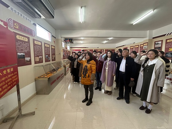 随后,全体党员面对党旗重温入党誓词,铿锵有力的声音和神圣的誓词在耳畔回荡,提醒着每一位同志认真思考作为新时代共产党员的责任和担当。