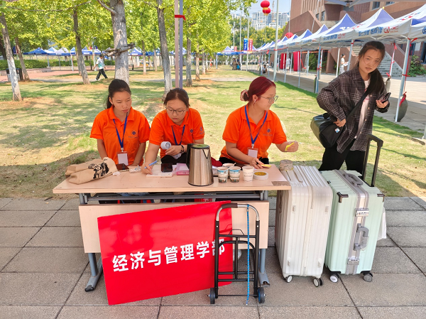 为确保迎新工作高效、有序开展,经济与管理学院提前谋划、精心安排。报到现场,志愿者们统一着装,热情接待,帮助新生搬运行李,耐心引导其完成身份核验、材料提交、住宿办理等流程。针对部分新生行李较多、对环境不熟悉的情况,学院设置了“行李搬运中转点”,并安排志愿者全程陪同。此外,服务点还准备了饮用水、防暑药品等物资,方便新生和家长使用。