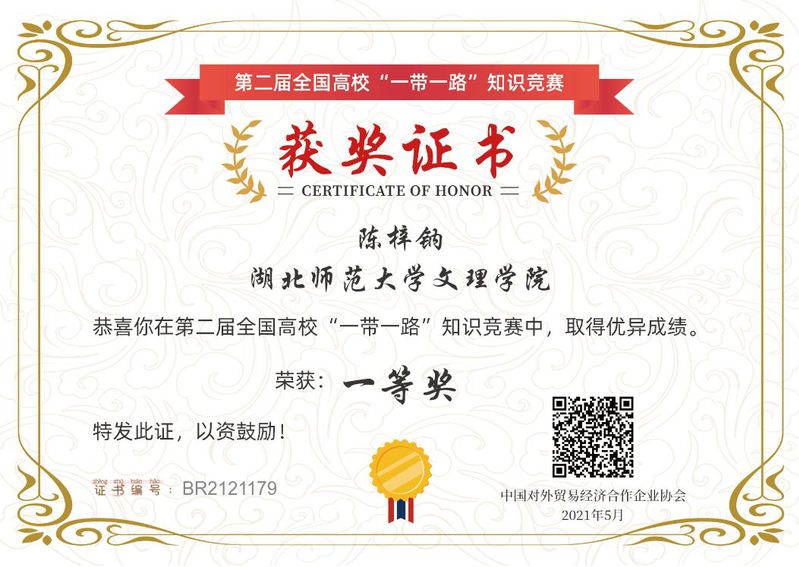 第二届全国高校“一带一路”知识竞赛一等奖