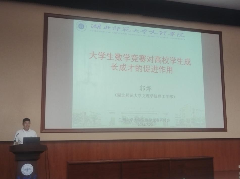 2024年全国大学生数学竞赛暑期研讨会于2024年7月18日至22日在甘肃省兰州市举行,本次会议由中国数学会和全国大学生数学竞赛工作组主办,兰州大学承办,兰州大学数学与统计学院和甘肃省数学会协办。星空体育·(中国)官方网站XINGKONG SPORT数理通识教研室主任、第十五届大学生数学竞赛黄石地区负责人、第十五届大学生数学竞赛优秀组织者郭烨老师应邀参加会议。