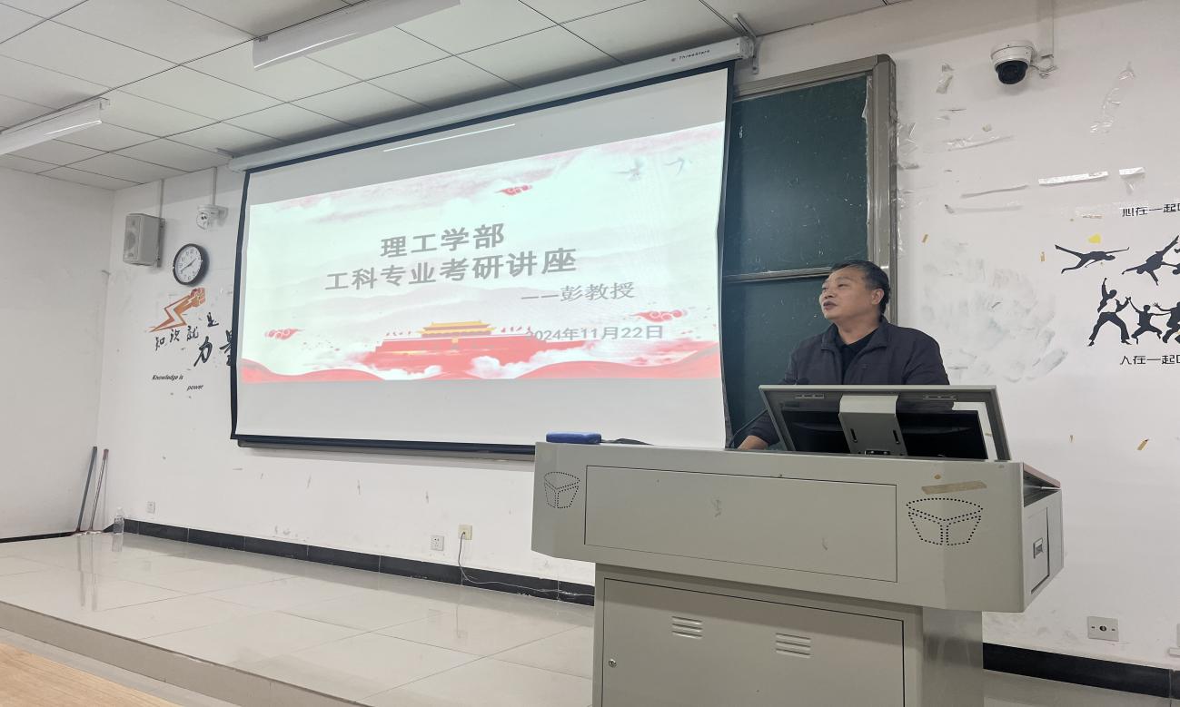 为进一步提升理工学部人才培养质量,充分调动学部工科专业学生考研积极性,加强学生对考研政策的了解,坚定考研方向。理工学部邀请彭绪富教授于2024年11月22日下午2点半在教学楼1B213教室举办“以脚踏实地,仰望星空”为主题的考研讲座。