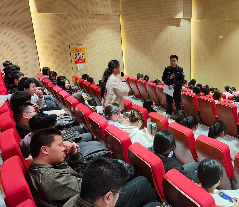活动伊始,学术活动中心的屏幕上依次播放了不同诈骗种类及相应的反诈骗视频,帮助大家了解诈骗类型。随后,吴警官分别向大家介绍了刷单、网购、冒充公检法等诈骗行为类型和表现,并在互动环节询问同学们是否有遇到被诈骗经历,其中一个女生分享了她曾经遇到过一次购物诈骗,但通过反诈常识最终没有被骗子的花言巧语迷惑双眼。活动最后,吴警官反复强调了下载国家反诈中心的重要性并要求全员下载反诈骗App,提醒大家务必要时常登录反诈骗App并且打开预警功能,从而加强反诈骗App的预警作用。