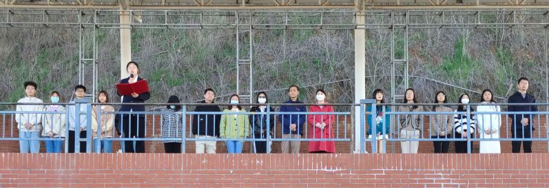 为深入学习贯彻党的二十大精神,弘扬爱国主义,人文学部于2023年3月13日早上七点在学校操场举行升旗仪式。莅临本次升旗仪式的领导及老师有:人文学部主任熊子延、学部党总支部副书记汪玉宝、行政秘书邢建和、专任教师李帮彦及学部全体辅导员老师。