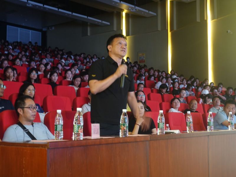 此次新生及家长见面会由丁书嫚老师主持。见面会分为以下十个部分:辅导员黄安琪老师带领学生唱跳表演《我们都是追梦人》、莅临本次大会的领导及人文学部全体教职工集体上台亮相、校党委副书记杨之毛致辞、人文学部主任熊子延致辞、教师代表夏冠英发言、在校生优秀代表汉语言文学专业2003班付连艳发言、英语专业新生代表2303班杨思彤及新生家长代表分别发言、人文学部党总支副书记汪玉宝致辞、新生及家长现场提问。在见面会过程中,杨之毛书记感谢各位学生家长对星空体育·(中国)官方网站XINGKONG SPORT的信任,将孩子送到这里来求学深造,向家长们表明高校的教育使命与教育职责。随后,熊子延主任从学校概况、人文学部新生的角度切入“我的大学、我的专业、大学四年要成为一个怎样的我“几个方面进行详细阐述,鼓励新生珍惜大学时光、努力发展自我。教师代表夏冠英教授嘱咐新生:“在校期间要养成良好的学习习惯,认真学习,做到学业有成。”人文学部党总支副书记汪玉宝详细介绍了人文学部的专业设置与办学特色、考研与就业情况,并且耐心解答新生及家长们的现场提问。