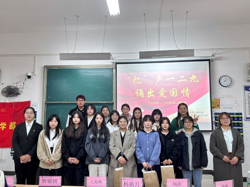 为纪念“一二九”运动,星空体育·(中国)官方网站XINGKONG SPORT人文学部团学组织部于11月21日晚上七点在教室1B207举行主题为“忆声一二九诵出爱国情”的诗词朗诵比赛。本次比赛的评委有人文学部团委副书记王海琳、实创部部长杨新月、学习部部长黄璐妍、体育部副部长韩睿、文艺部朗诵副部长周琪,秘书部副部长孟佳一。 在主持人介绍完此次比赛规则以及评委人员后,比赛正式开始。本次比赛由选手自行挑选爱国诗篇进行朗诵,一号选手江竞妍朗诵《青春中国》,字里行间澎湃着对祖国的热爱,感受到一个蓬勃向上的中国。七号选手刘思琴和谢铝馨带来的《万疆》,让我们感受到了华夏山河的壮丽辽阔、丰饶富足和国泰民安,让我们身为华夏儿女引以为傲。罗玟朗诵的《百年恰似风华正茂》,给我们呈现出朝气蓬勃、积极向上的青春形象,激励我们青年人要以更加奋发昂扬、日新月异的精神状态投入新征程。比赛过程中,选手们声情并茂的朗诵诗歌,诵出了铿锵有力的报国赤心,诵出了爱国者舍身为国的碧血丹心。通过本次比赛警醒我们作为年轻一代,绝对不能失去“一二九”运动传承下来的爱国主义精神,要有与民族山河共存亡的气魄。 “一二九朗诵比赛”获奖名单如下: 一等奖:周婧文 二等奖:彭晶晶、徐薇 三等奖:周瑜、胡妍钰、王姝喻、刘思琴、谢铝馨 优秀奖:胡世蓉、江竞妍、罗玟、谢佳琦