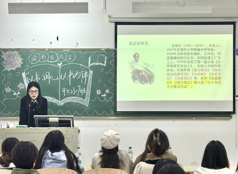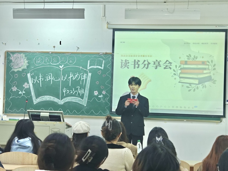 20241112日晚,中文2307班于2B405教室成功举办了主题为“以书润心,与书为伴”的读书分享会。此次活动旨在激发同学们的阅读热情,深化阅读的思考与交流,营造浓厚的学习氛围,进一步丰富校园文化生活。