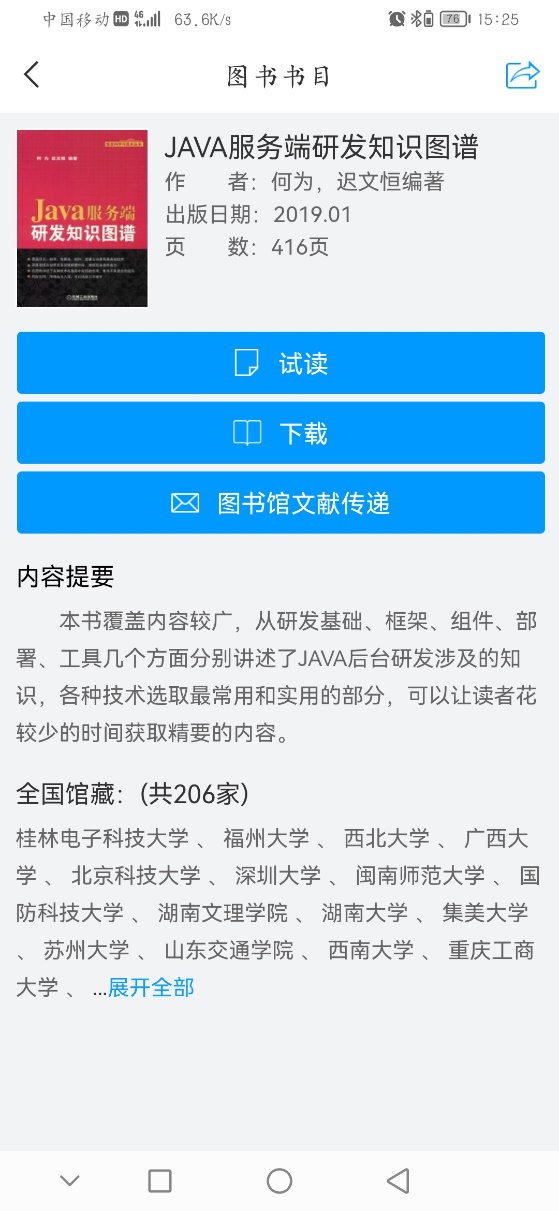 “图书书目”是相关的书籍,支持在线试读,下载和图书馆文献传递,文献传递范围一次不超过50页。