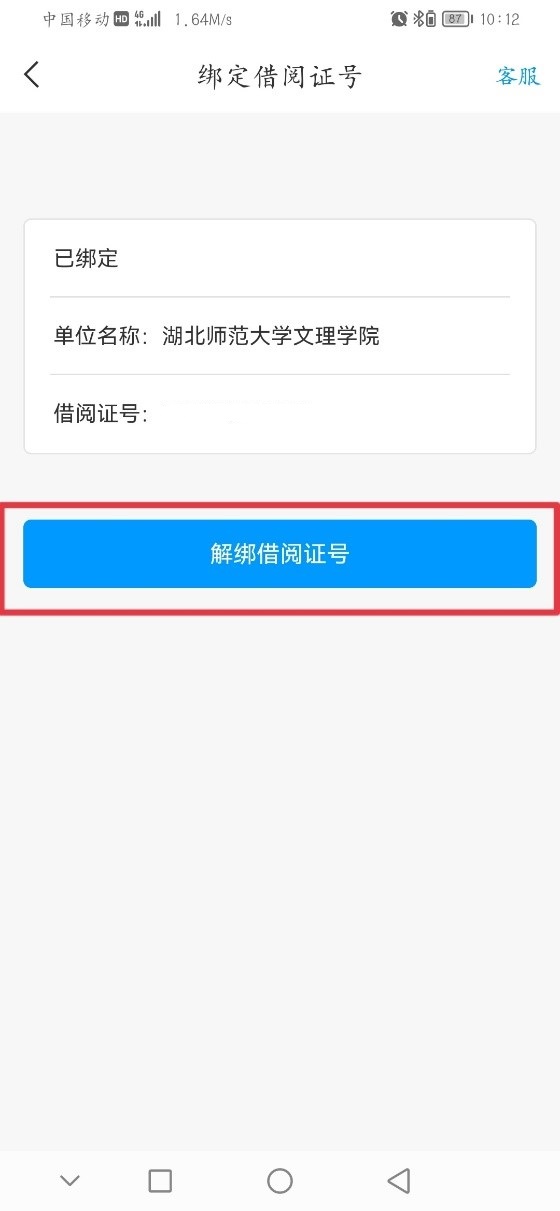 验证成功如图,如需解除绑定,点击“解绑借阅证号”即可。