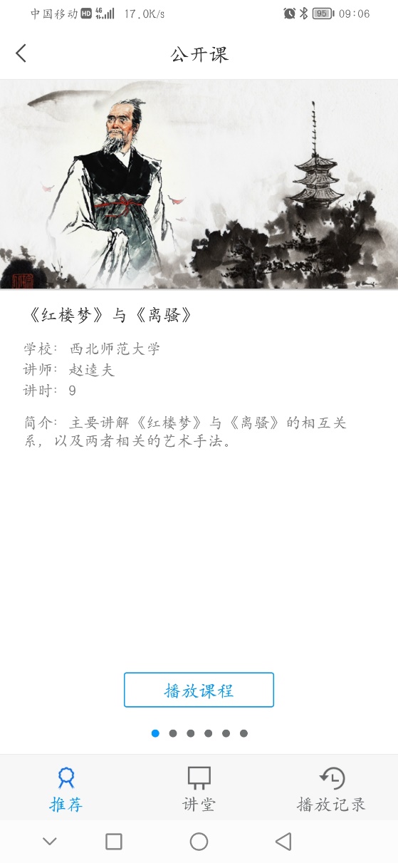 公开课资源可以在线学习,“讲堂一栏”可通过右上角进行检索,每个课程都可以查看课程简介和讲师简介。