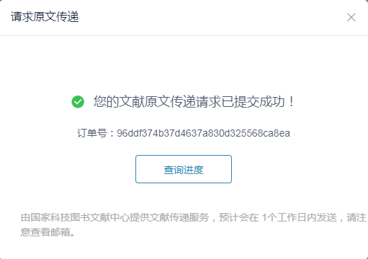 3.查询到所需文献后,单击题名可进入文献详情。如需下载全文,选择“原文传递”,输入邮箱地址,一个工作日内会发送到邮箱。