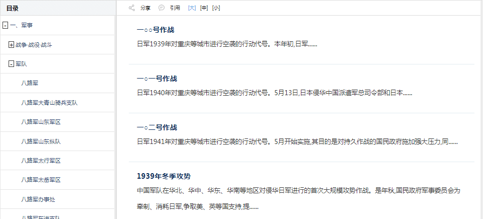 如图5.8.7.2所示,左侧展示工具书的目录,右侧展示已选目录节点的内容,点击