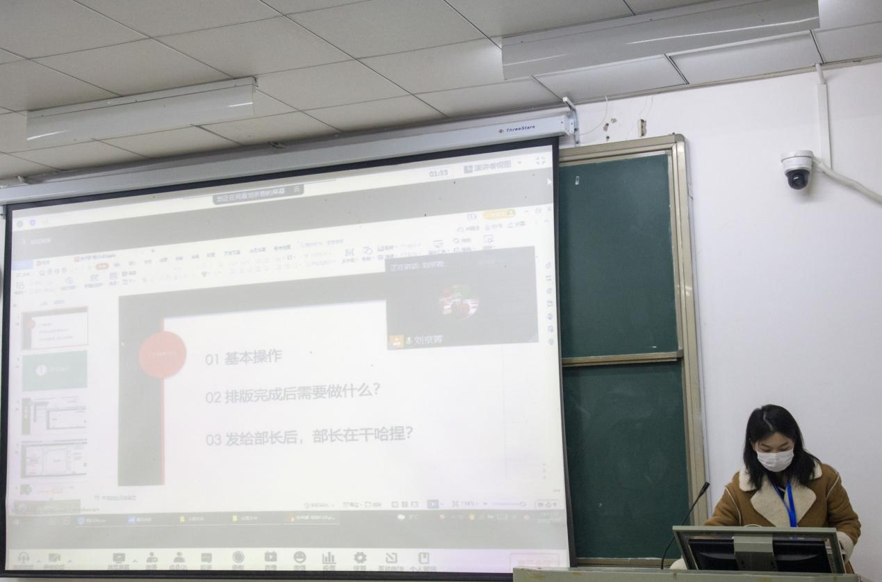 会上,记者团指导老师刘婉依首先介绍了记者团的组织架构以及工作过程中出现的情况,她强调,宣传工作的真实性、高效性、创新型至关重要。接着,双方代表分享了各自的工作想法和经验,记者团副团长刘京菁详细介绍了推文的编辑排版、视频的剪辑技巧,同时分享了改善相片效果的方法;宣传部副部长刘萍萍指出新闻稿写作的准确性与逻辑性,学会拆解优秀稿件的句式和结构对撰稿能力提升大有裨益。