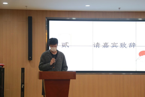 仪式第二项,学工部团委指导老师向品源致辞,他指出荆楚文化是华夏文化的重要组成部分,期望同学们通过大赛进一步了解荆楚文化,宣传荆楚文化的底蕴和内涵。同时呼吁广大学子,以自己独特的方式来弘扬和传承优秀传统文化。