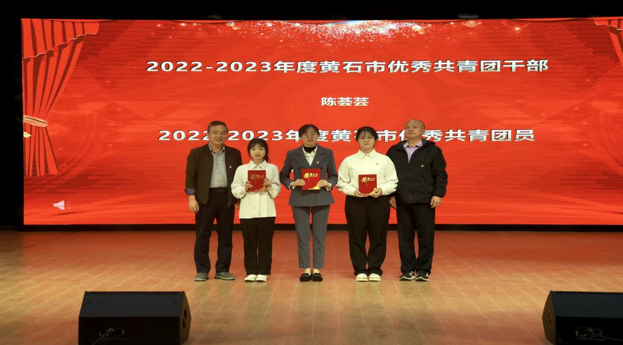 李先华书记和肖圣芳副部长为“2022-2023年度黄石市优秀共青团干部、优秀共青团员”颁奖