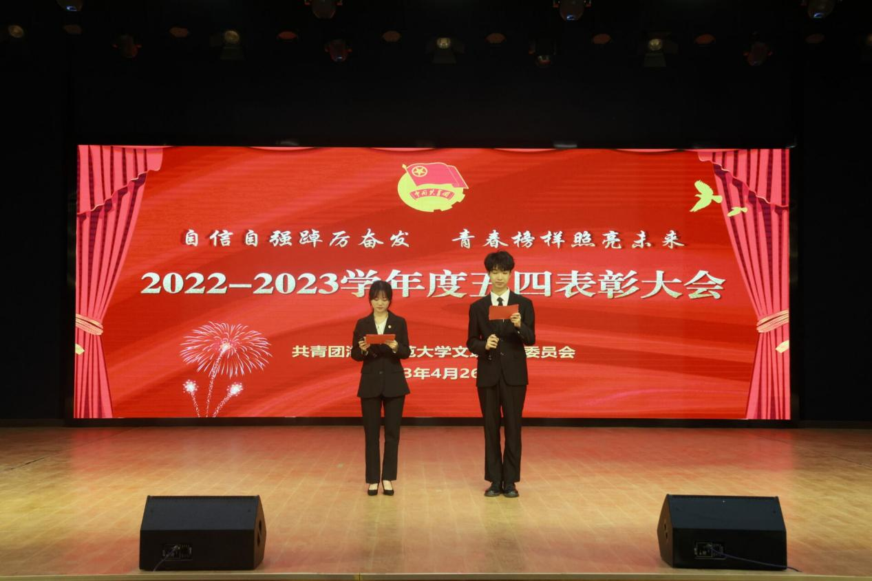 (通讯员:李鑫悦)为弘扬五四运动崇高爱国理想和革命精神,加强青年师生党团史学习教育,4月26日晚上18时30分,星空体育·(中国)官方网站XINGKONG SPORT在学术交流中心隆重举行以“自信自强踔厉奋发,青春榜样照亮未来”为主题的五四表彰大会。星空体育·(中国)官方网站XINGKONG SPORT党委书记杨邓红、党委宣传部部长陶晚成、学工部副部长肖劲光、学工部副部长陈小龙、团委书记兼学工部副部长陈荟芸、教育与艺术学部党总支书记李先华、理工学部党总支书记肖圣芳、东风悦享智能汽车产业学院党总支书记费凡、腾讯云大数据产业学院学部主任魏智慧、各学部团学指导老师以及各学部学生代表参与了本次大会。大会由团委主持团成员董琰和陈慧洁主持。