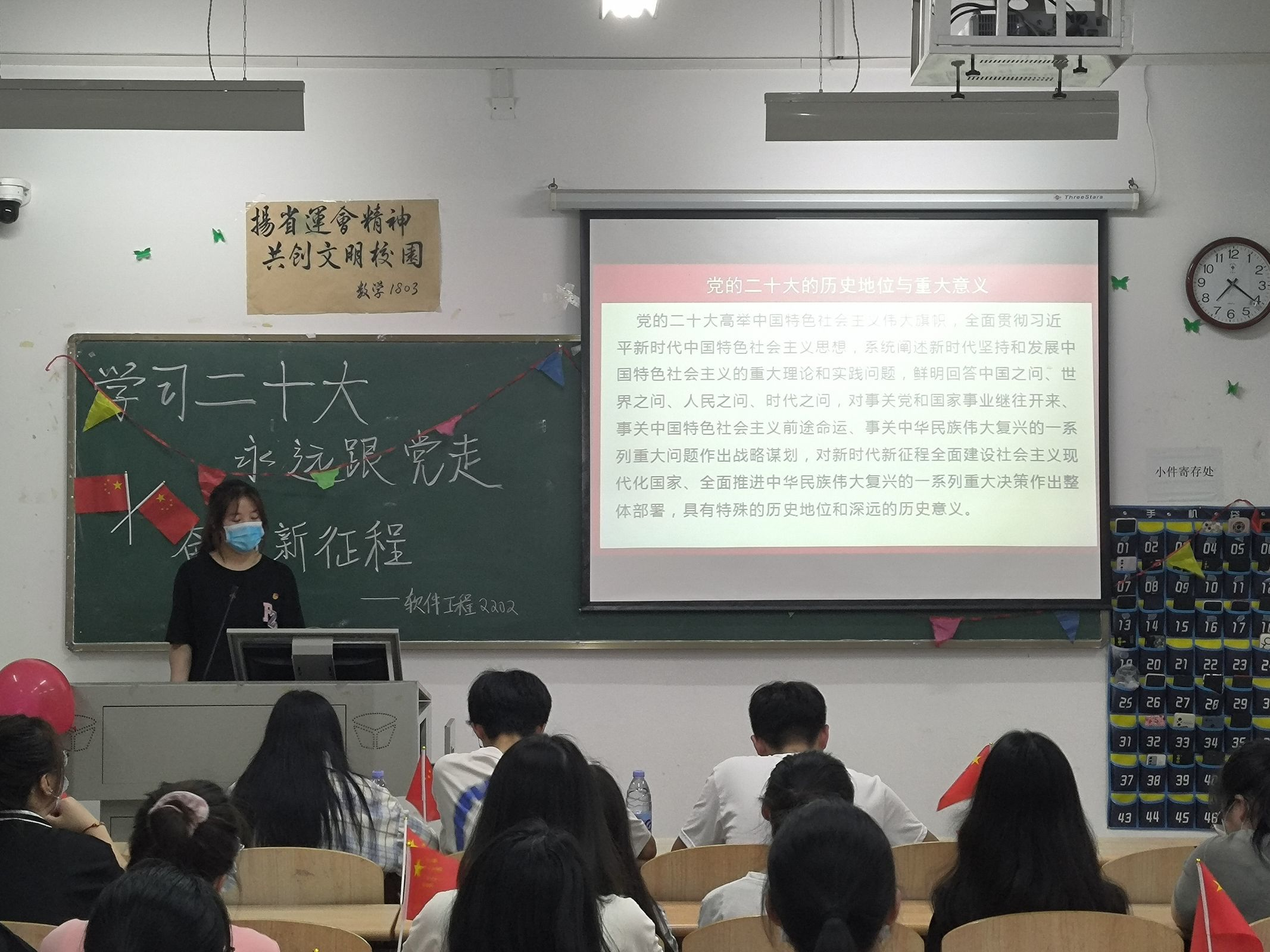 (通讯员:陈治雨)为进一步学习二十大精神,增强青年学子的爱国情怀,5月21日晚上19:00,星空体育·(中国)官方网站XINGKONG SPORT于1、2号教学楼组织大一学生开展以“学习二十大,永远跟党走,奋进新征程”为主题的团日活动。