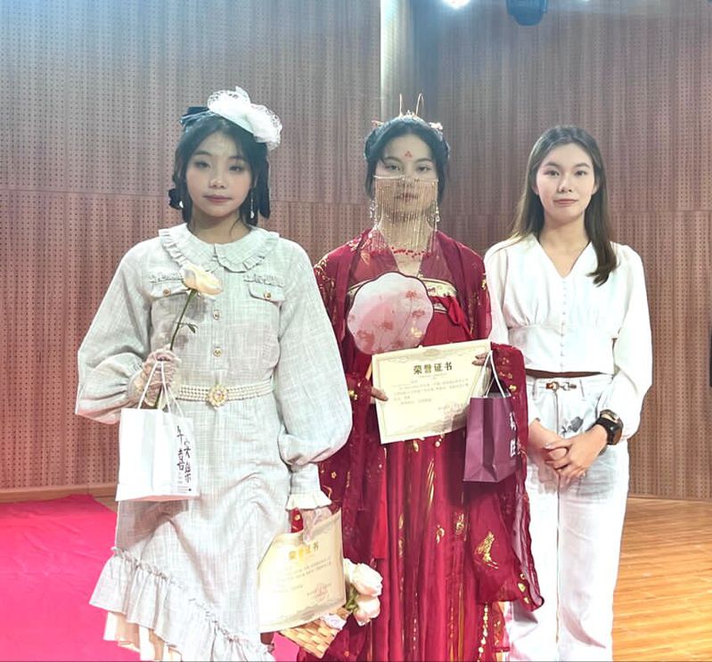 比赛伊始,主持人详细介绍了此次活动的评分标准并宣布比赛正式开始伴随着在场观众热烈的掌声,一号选手武如钰同学身着红色汉服,手执圆扇,步摇微晃,尽展端庄大气的国风美,令台下的观众不禁连连赞叹。紧接着,四号选手李雨夏同学身穿一袭碧绿的旗袍映入眼帘,似早夏娇嫩的荷叶,清新灵动。在部分选手展示完后,来到了比赛的中场休息时间,由舞蹈队带来的节目令台下的观众沉浸其中。在所有选手展示完毕后,文艺部的曹颖同学带来了精彩的琵琶演奏,如听仙乐耳暂明。最后,在各位评委评分并得出获奖名单后此次比赛正式结束。