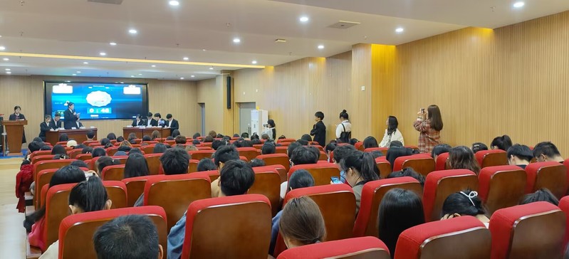 为加强不同学部间同学们的交流互动,202339日晚七点,人文学部和理工学部在图书馆报告厅举办了一场以“如果要继续乘风破浪,应该与青春告别还是让青春延续”为主题的辩论比赛。本场辩论赛的评委分别是: 第八届智搏辩论社社长周琰彤,校辩论队教练郑茜,校辩论队副队余飞,第七届新生杯辩论赛高职一学部最佳辩手王乐,第七届新生杯辩论赛经管学部最佳辩手梅旭文。