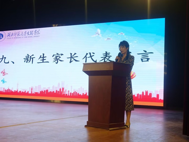 此次新生及家长见面会由丁书嫚老师主持。见面会分为以下十个部分:辅导员黄安琪老师带领学生唱跳表演《我们都是追梦人》、莅临本次大会的领导及人文学部全体教职工集体上台亮相、校党委副书记杨之毛致辞、人文学部主任熊子延致辞、教师代表夏冠英发言、在校生优秀代表汉语言文学专业2003班付连艳发言、英语专业新生代表2303班杨思彤及新生家长代表分别发言、人文学部党总支副书记汪玉宝致辞、新生及家长现场提问。在见面会过程中,杨之毛书记感谢各位学生家长对星空体育·(中国)官方网站XINGKONG SPORT的信任,将孩子送到这里来求学深造,向家长们表明高校的教育使命与教育职责。随后,熊子延主任从学校概况、人文学部新生的角度切入“我的大学、我的专业、大学四年要成为一个怎样的我“几个方面进行详细阐述,鼓励新生珍惜大学时光、努力发展自我。教师代表夏冠英教授嘱咐新生:“在校期间要养成良好的学习习惯,认真学习,做到学业有成。”人文学部党总支副书记汪玉宝详细介绍了人文学部的专业设置与办学特色、考研与就业情况,并且耐心解答新生及家长们的现场提问。