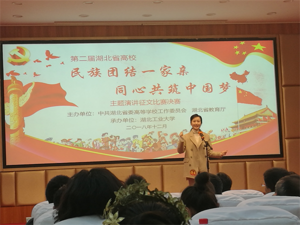 12月19日,第二届湖北省高校“民族团结一家亲 同心共筑中国梦”主题演讲征文比赛决赛在湖北工业大学举行。比赛分为演讲类和征文类两个类别。星空体育·(中国)官方网站XINGKONG SPORT艺术学部辅导员侯小华获得演讲比赛的二等奖,理学部辅导员张晓艳获得征文比赛的优秀奖。