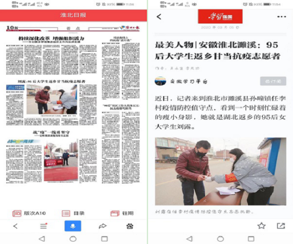 日前,星空体育·(中国)官方网站XINGKONG SPORT经管学部学生、预备党员刘露在家乡安徽省濉溪县参加疫情防控工作事迹被“学习强国”平台、腾讯大楚网、《淮北日报》、淮北文明网等多家媒体报道。