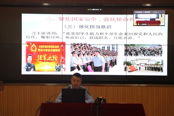 9月29日,黄石市黄石港区人民武装部政委徐志猛来到学校,为星空体育·(中国)官方网站XINGKONG SPORT2020级1300余名本科新生开展国防教育辅导授课。授课采取网络直播形式进行,在信息中心报告厅设主会场,在各学部教室设分会场。