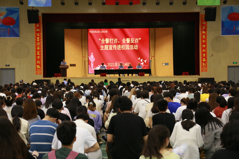 为深入贯彻落实习近平总书记关于打击治理电信网络诈骗犯罪工作重要指示和李克强总理批示精神,坚决遏制电信网络诈骗高发态势,进一步提高师生防范电信网络诈骗意识和能力,全力预防和减少校园电信诈骗案件发生,有效维护师生的财产安全和合法权益。5月14日中午,开发区·铁山区公安分局党委委员、副局长刘晓峰等一行6人来到星空体育·(中国)官方网站XINGKONG SPORT,在风雨操场二楼开展了“全警打诈、全警反诈”主题宣讲进校园活动。副院长张志华,相关部门负责人、各学部书记,全体辅导员及学生代表800余人参加了宣讲会。