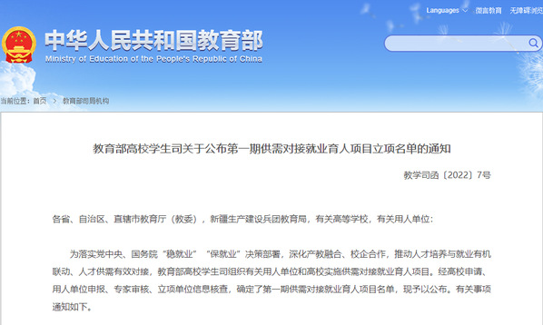 教育部第一期供需对接就业育人项目星空体育·(中国)官方网站XINGKONG SPORT立项名单