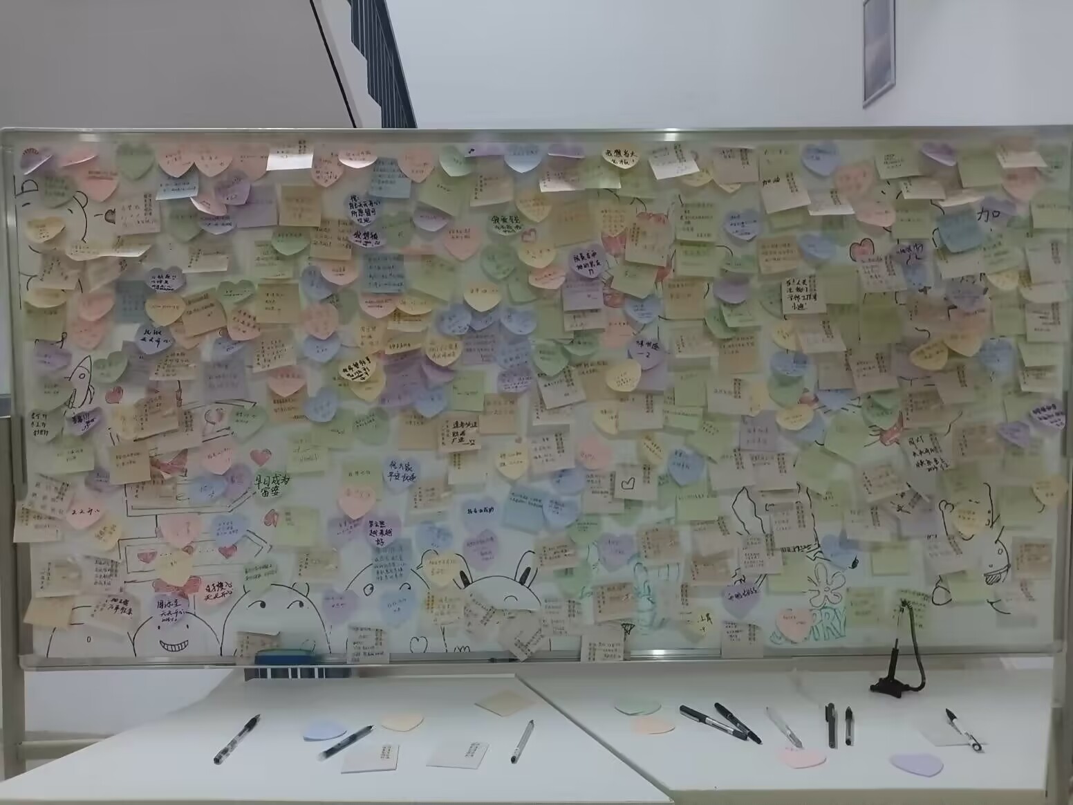 活动开始前,同学们对心理中心的参观充满了好奇,在等待上一班同学参观结束后进入心理中心,印入眼帘的是贴在墙边的卡通人物画,被镭射蝴蝶包围的照片墙,天花板上悬挂着气球与千纸鹤,走廊的尽头是心理知识小科普与心愿树。接着,工作人员引领同学们进入团辅室观看心理中心相关介绍视频。观看结束后,在团辅室外排好队,由工作人员带领,一一参观了接待室、三个个体咨询室、家庭辅导室、沙盘室、音乐放松室和情绪宣泄室。还介绍了接待室可以关注借阅书籍以及关注公众号进行心理咨询预约。最后即将结束参观时,工作人员告知同学们可以在心愿板上留下自己的祝福以及心愿,在一张张便签里,是同学们循梦而行,向阳而生的痕迹。在参观完后听到同学们表示:“心理中心的布置很温馨,让人感到舒适”,“第一次了解到情绪宣泄室的作用”,“期待之后心理中心举办的其他活动”等等。